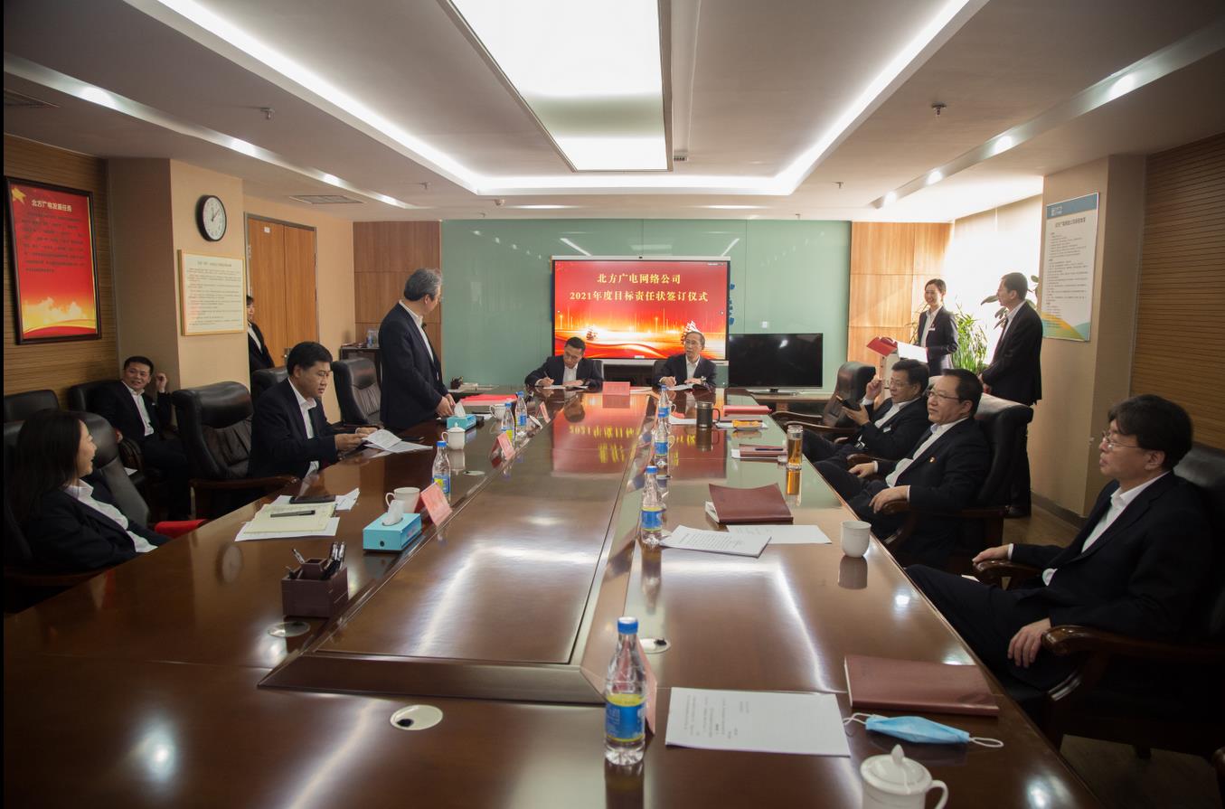 2021年2月9日,北方广电网络公司举行总部职能部门和专业分公司2021年度目标责任状签订仪式。仪式由公司副总工程师李成雨主持。公司领导班子及总助级领导人员、总部相关职能部门和专业分公司主要负责人参加签订仪式。
