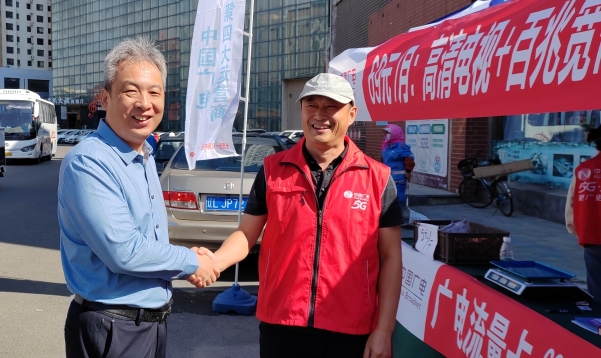 李成雨先后来到双台子区、兴隆台区地推营销现场和营业厅、播出机房,与员工亲切交流,对节假日期间仍然坚守岗位,为公司发展无怨无悔奋战在一线的广大干部职工致以节日的问候和衷心的感谢!
