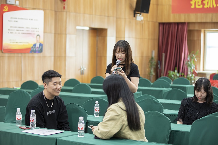 课间,为了让讲座更加生动有趣,赵楠老师还组织了互动环节。现场问答后,他让员工们进行即兴演唱,现场一对一的指导他们如何在没有伴奏的情况下保持音准和节奏,以及声乐演唱的行腔、吐字、运气等方面知识,让大家对声乐技巧有了更深层次的理解和认识,激发了员工们对声乐艺术的热情。