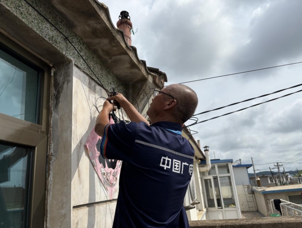 七月流火,大连瓦房店被热浪包裹,连续一周的高温预警让柏油路蒸腾着热气。当城市在酷暑中放缓节奏,中国广电大连天途公司瓦房店分公司的抢修车却仍在乡间小道上穿梭。周边所所长王长勇的蓝色工装后背,早已被汗水洇出深浅不一的盐渍——这位有着20年工作经验的“老广电人”,正用黝黑的臂膀扛起千家万户的信号畅通。