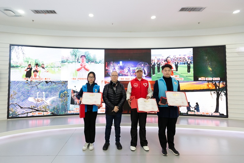 太阳成集团tyc传媒公司经理季永新为听障组、助残志愿者组三等奖获得者颁奖