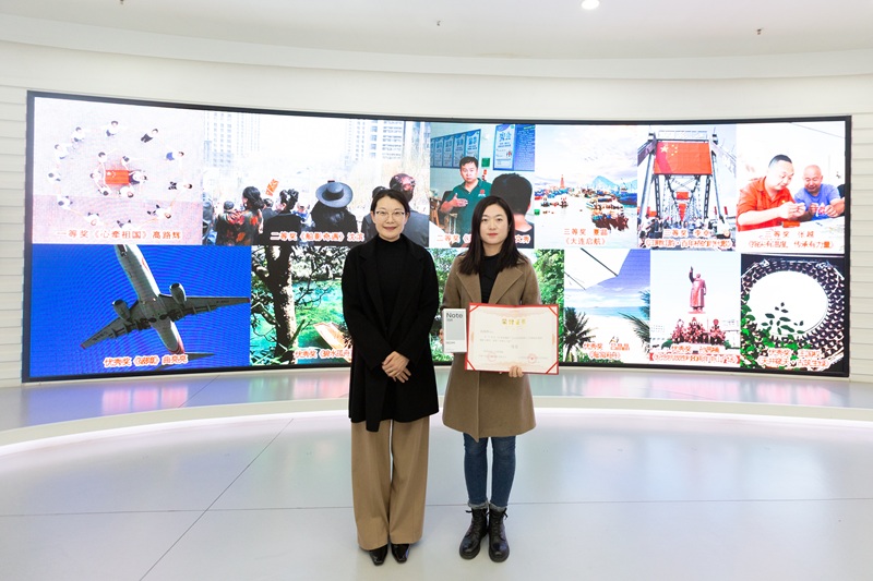 中国广电沈阳分公司党委委员、副总经理裘远真为助残志愿者组二等奖获得者颁奖