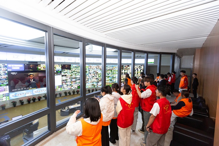 出席仪式的嘉宾走进公司5G应用创新综合展示厅,深入总前端监控播控中心,全方位了解公司核心业务与技术创新成果