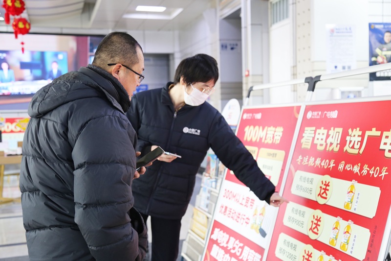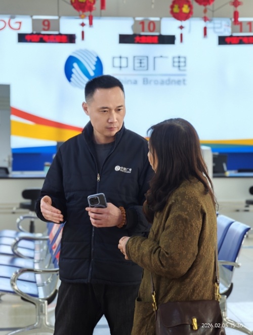 春节期间,沈阳于洪区域公司广电人坚守岗位,为用户暖心护航。营业厅热情受理业务,客服专员上门为用户调试设备,全天候守护千家万户新春电视信号畅通。