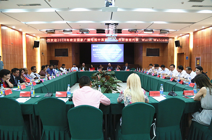 5月31日,2018年欧亚国家广播电视中高层管理人员研修班代表一行32人到北方广电网络公司进行交流考察。下午三点,代表们在北方广电网络公司总经理曾绍武的陪同下参观了公司全业务展播大厅,观看了公司发展宣传片,听取了公司总经理曾绍武对智慧社区、体感游戏、VR等基于“极速云电视”开发的新产品、新业务的情况介绍,并参观公司国内行业领先的全业务播控中心。