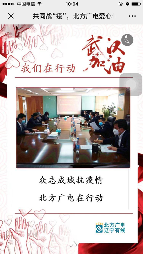 北方广电愿同全国人民一道,团结一心、同舟共济,齐心协力做好疫情防控工作;北方广电全体员工将从自己做起,从身边做起,奋发有为、共克时艰,坚决打赢这场疫情防疫攻坚战!
