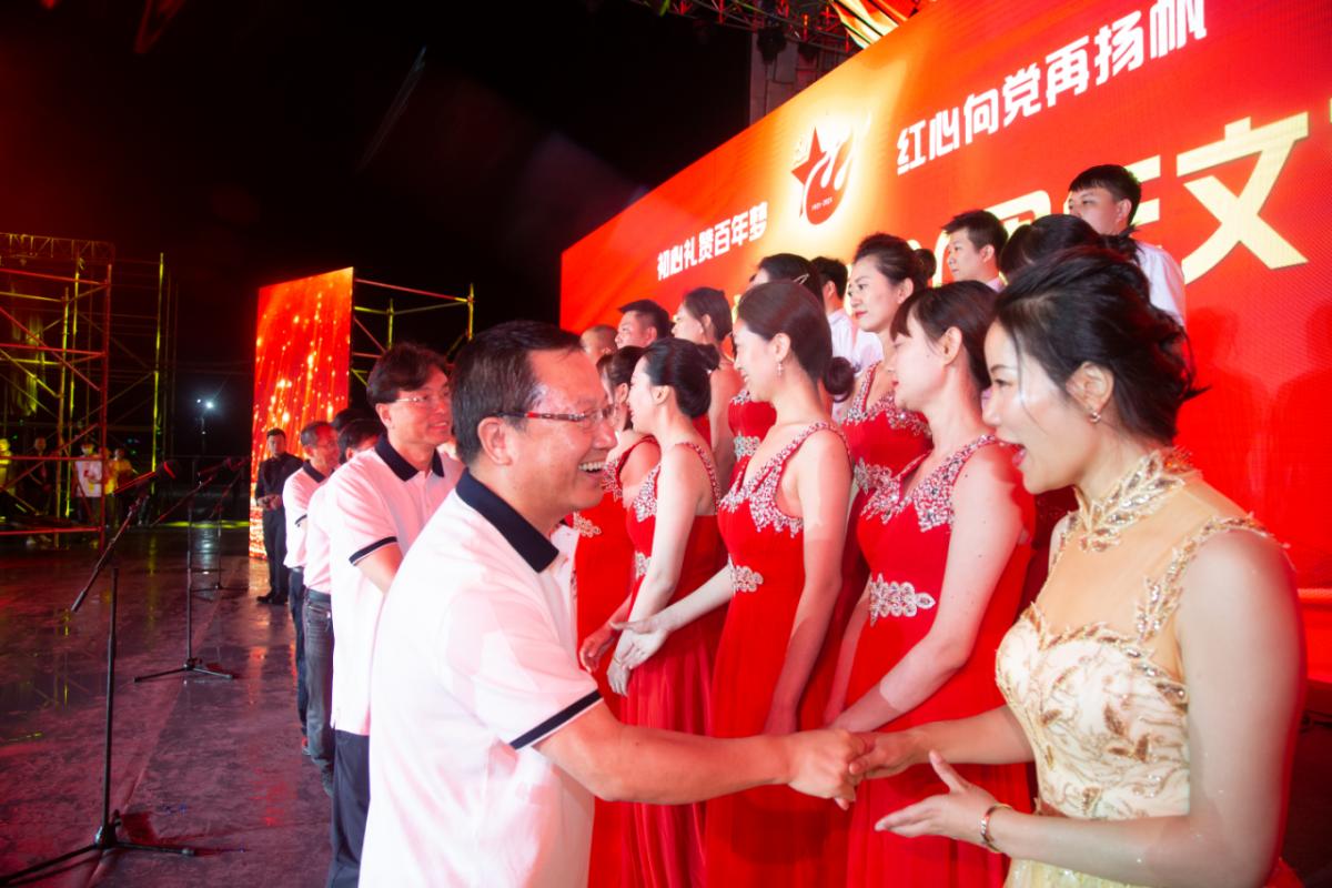 演出结束后,在《没有共产党就没有新中国》铿锵有力的旋律声中,公司领导走上舞台和演职人员合影留念。整场文艺汇演以“初心礼赞百年梦 红心向党再扬帆”为主题,历时一个半小时,通过舞蹈、大合唱、诗朗诵、表演唱、红歌联唱等形式,献上5800余名太阳成集团tyc干部员工对党的热爱之情,坚定永远跟党走的磐石之心,激发为党的事业奋斗终身的磅礴力量。