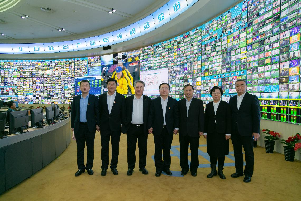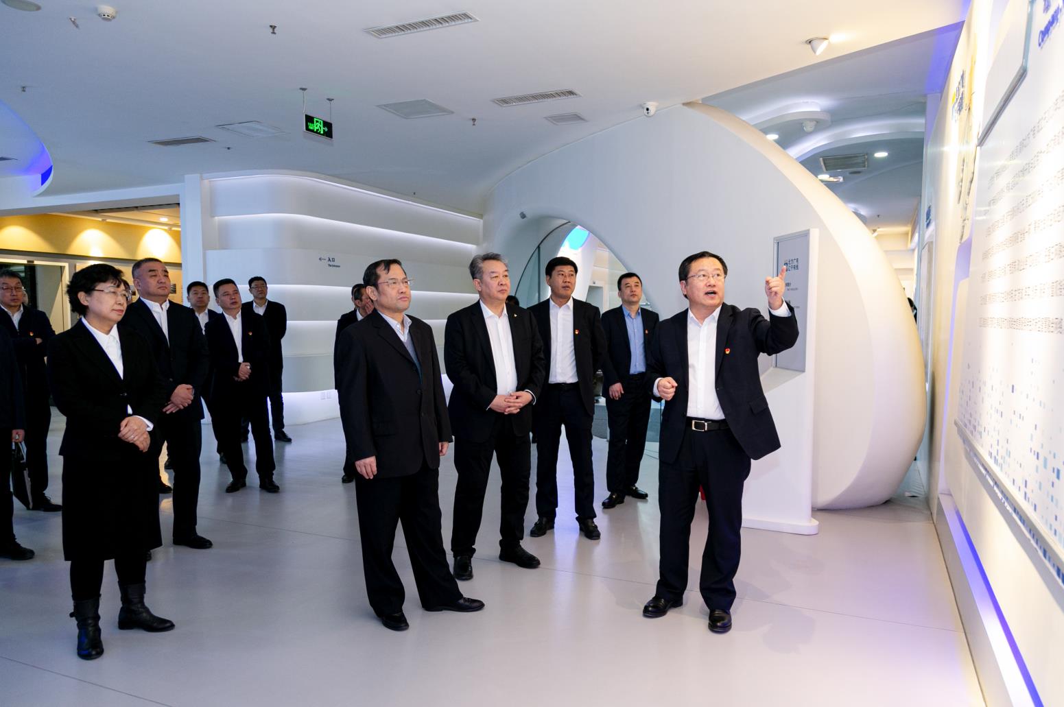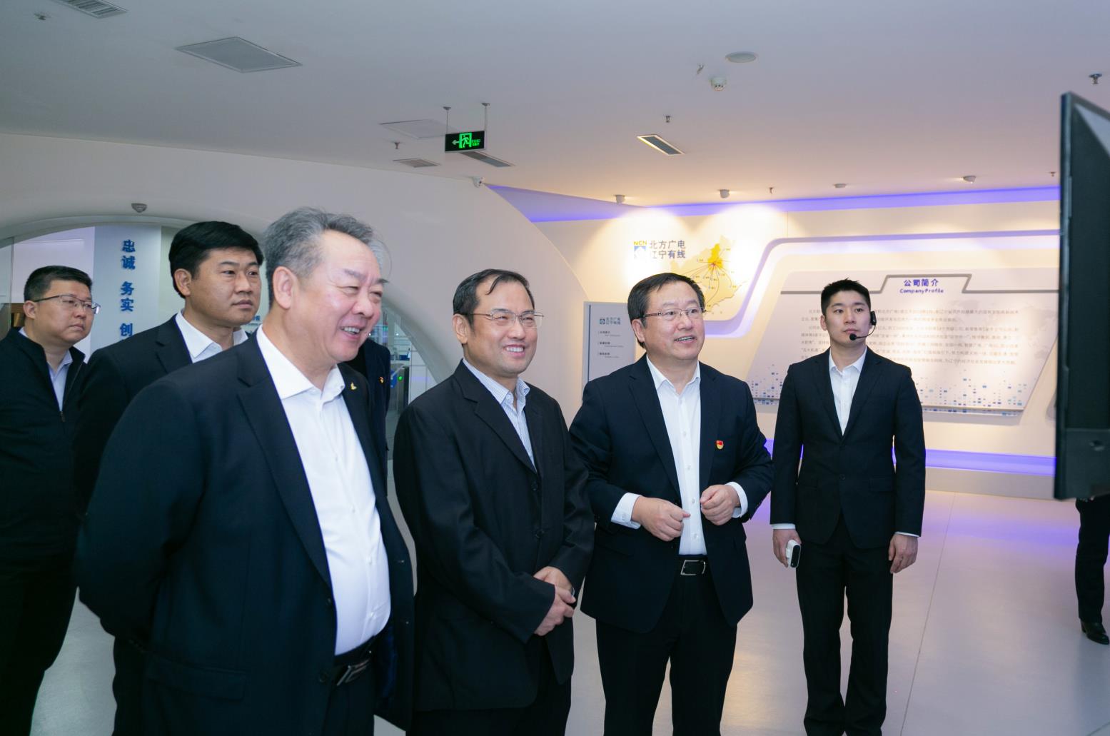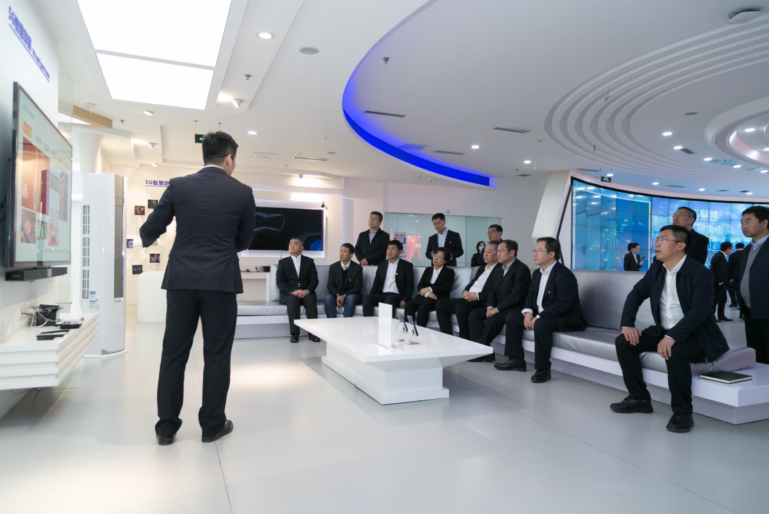 曾绍武董事长向参加仪式领导介绍公司5G智慧安防、智慧港口等业务应用