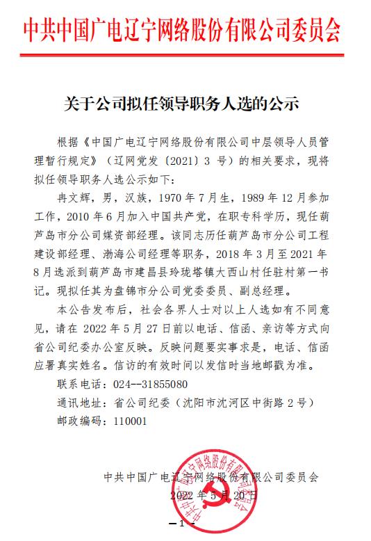 根据《公司中层领导人员管理暂行规定》(北网党发〔2021〕4 号)精神,现将拟任领导职务人选公示如下: