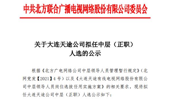 关于大连天途公司拟任中层(正职)人选的公示