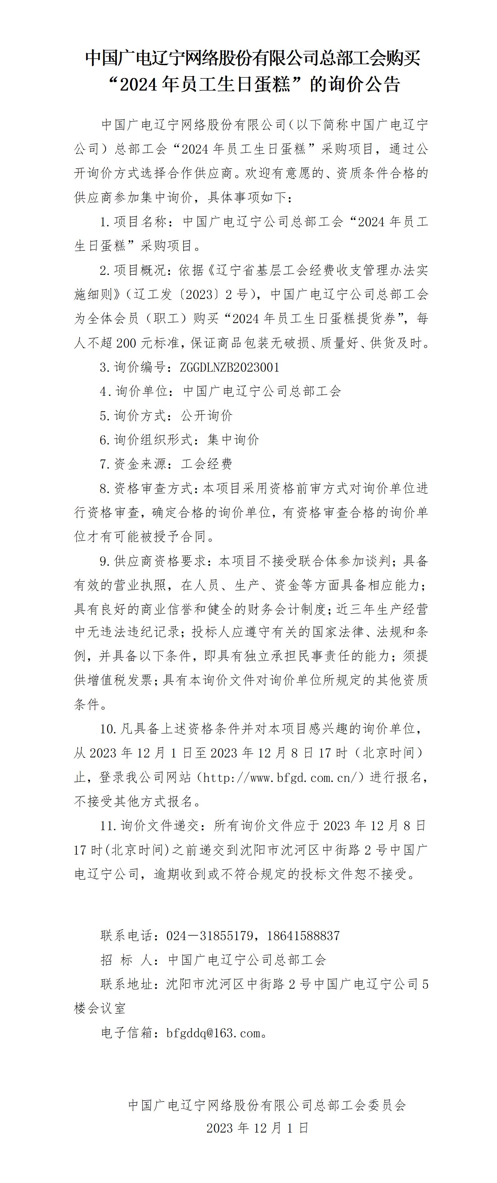 太阳成集团tyc总部工会购买“2024年员工生日蛋糕”的询价公告