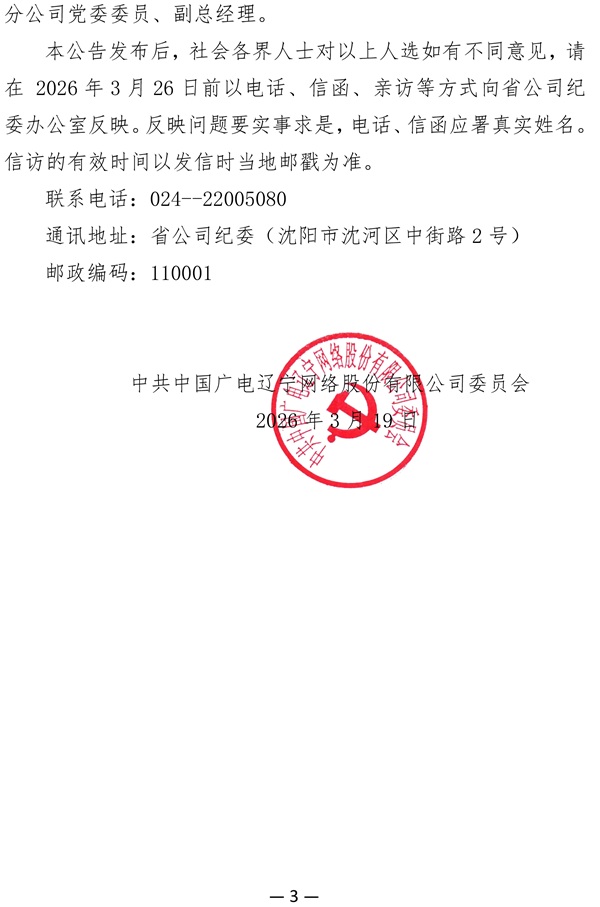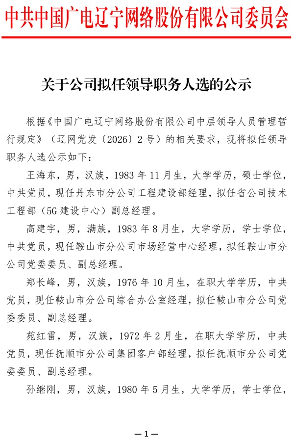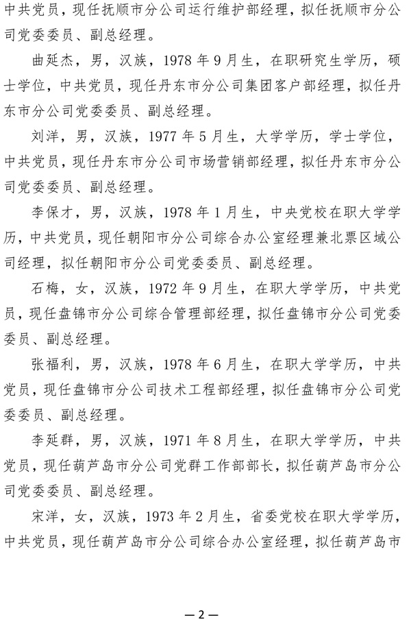 关于公司拟任领导职务人选的公示