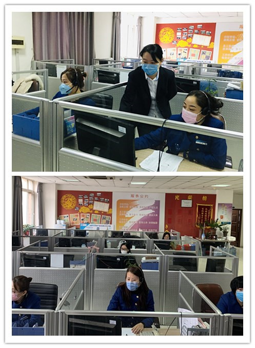 疫情期间为切实做好自身防护,客服部员工自发地拿来了体温计、消毒液、酒精等消杀防护用品,员工工作时全都戴起了口罩和手套,通过分区域坐席实行相对物理隔离,工作交流保持一米以上安全距离,每天测体温,定时对办公区域进行消毒。同时,客服部每天通过工作微信群及时发布疫情防护措施和疫情最新动态,加强对员工防控知识的培训与普及,对员工个人及其家庭成员有无发热症状、与外界人员接触情况进行摸排登记并上报。为避免人员聚集,食堂实行打包分餐,员工使用自备餐具或一次性餐具,分批领餐后回各自工位就餐。为了保证坐席电话时刻畅通,在班员工互相体谅,互相补位,都以最快的速度就餐,好腾出时间投入到工作中。