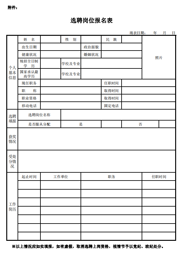 1.参与选聘人员需填写《选聘岗位报名表》,于10月9日17:00前通过邮箱(9020029@QQ.com)提报选聘工作领导小组办公室,并电话告知联系人。电子版文件名的编写为统一格式,具体为:现单位+现岗位/职务+姓名;