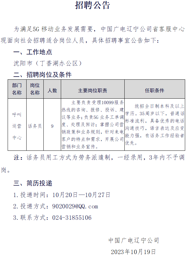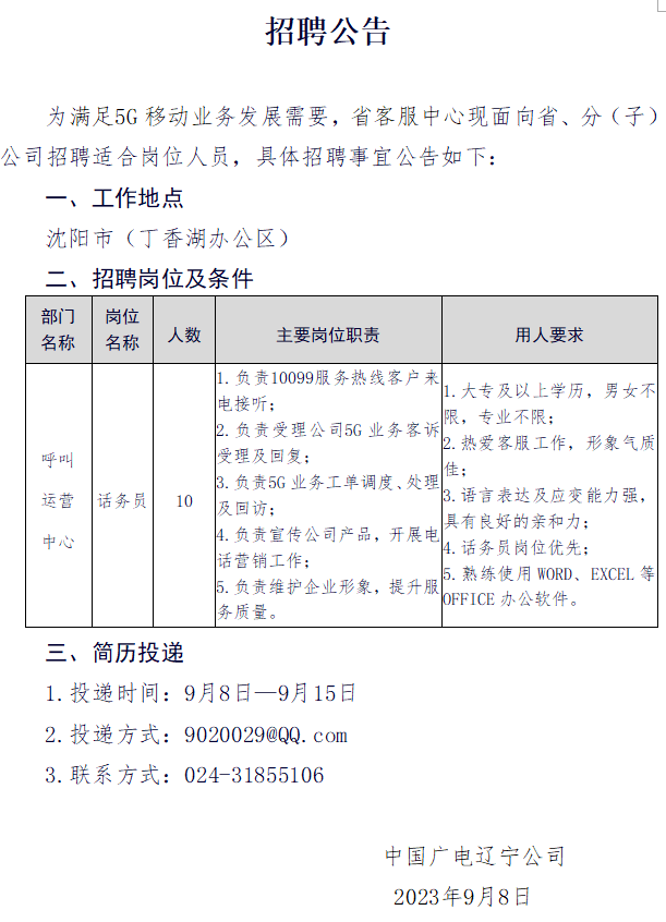 • 省公司客服中心对外招聘