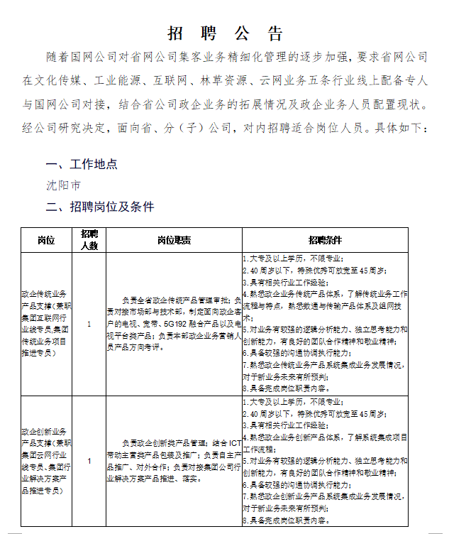 • 省公司集团客户中心招聘公告