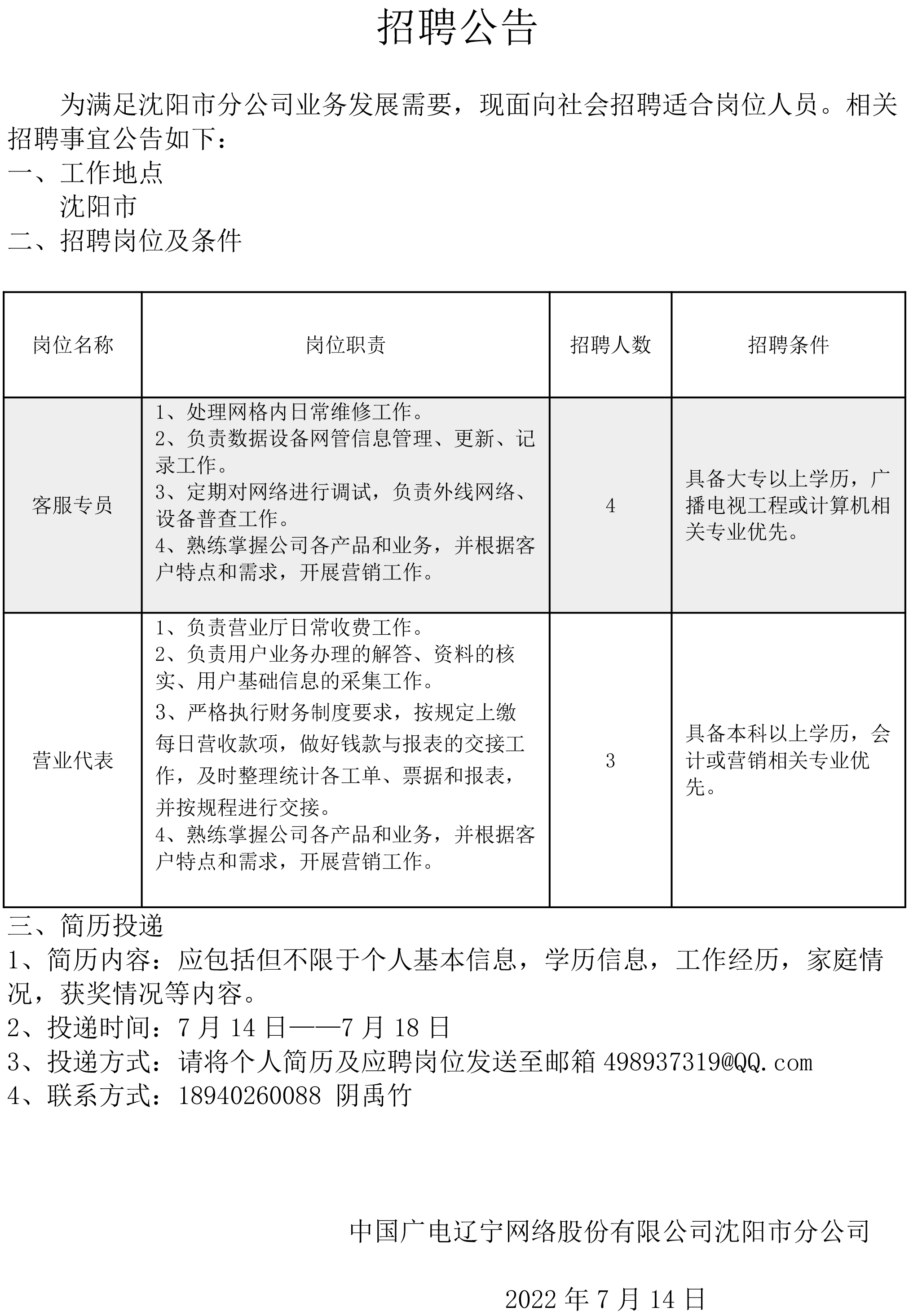 招聘公告