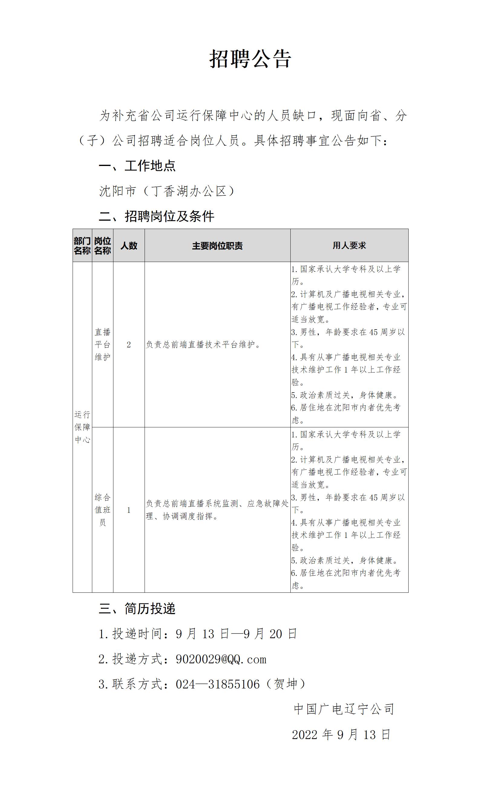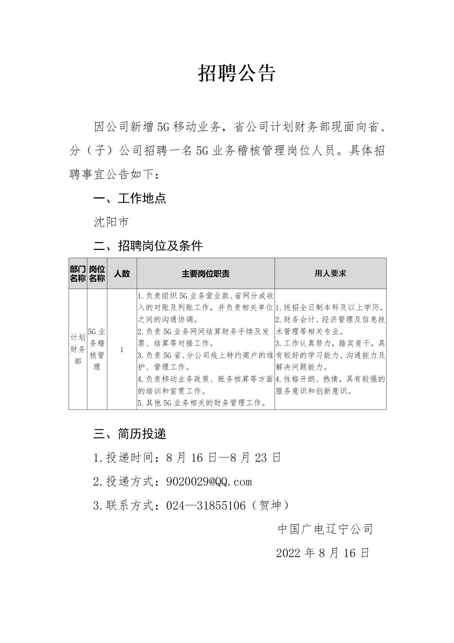 为满足互联互通及后期工作需要,加强省公司技术工程部(5G建设中心)专业人才队伍建设,现面向省、分(子)公司,内部招聘两名适合岗位人员,相关招聘事宜公告如下: